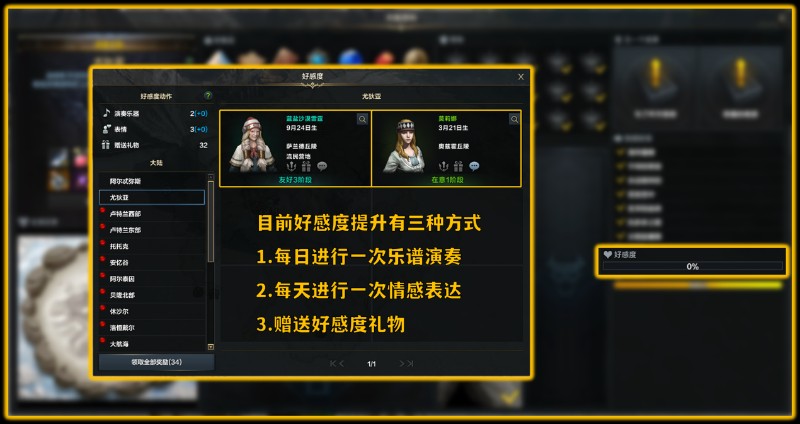 目前提升好感度的方式共计有三种
