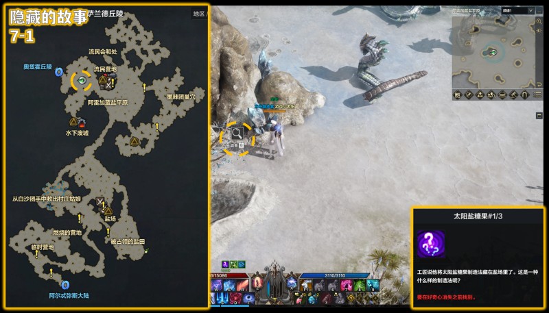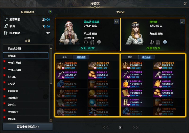 以上大陆百科在对照查找时,可能会由于地图没有缩放导致具体位置看的不是很清楚,这种情况下可以看右上角的小地图来确定具体的位置,好感度任务没有完成是因为体验服好感度材料不够,实际正式服做的时候我们可以慢慢来,大约半年的时间就可以全部弄满了