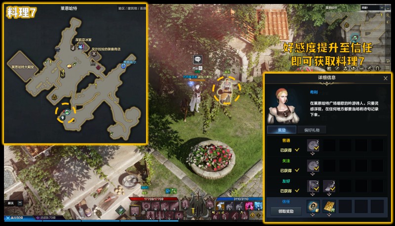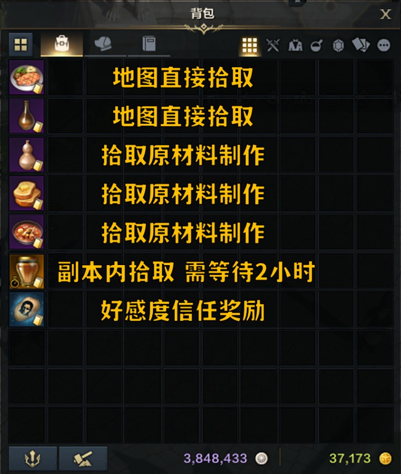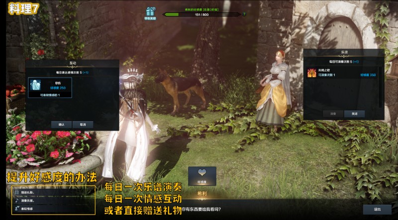 分为直接获取和获取原材料再去制作两种方式。部分特别的料理与NPC好感度挂钩